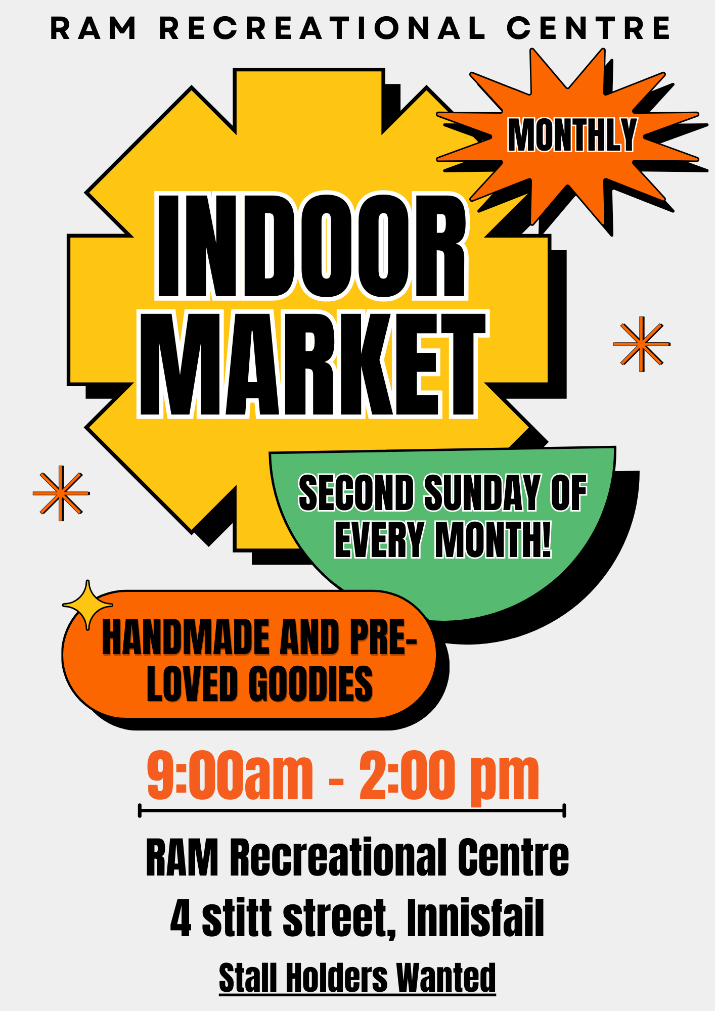 Discover something special at the RAM Recreational Centre’s Monthly Indoor Markets, held on the second Sunday of every month! Browse a variety of stalls featuring local crafts, handmade goods, delicious treats, and more. It’s the perfect place to shop, connect with the community, and support local businesses—all in a family-friendly setting. Don’t miss it!